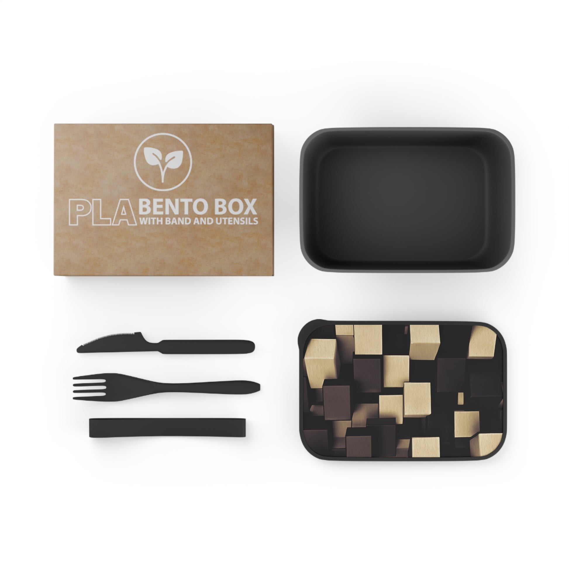 PLA Bento Box with Band and Utensils: BALEIJO Block Pattern Collection 01